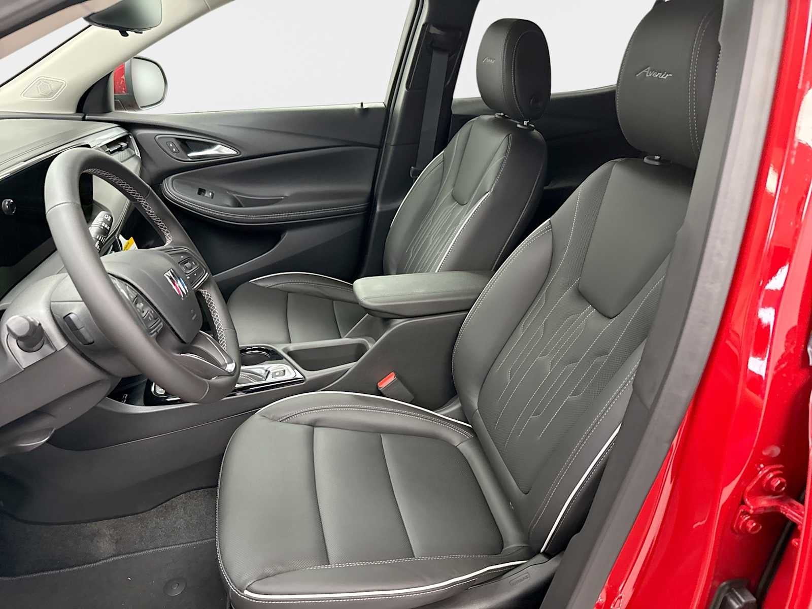 MOONROOF, POWER, PANORAMIC, TILT-SLIDING, AVENIR TECHNOLOGY PACKAGE includes (KSG) Adaptive Cruise Control, (DRZ) Rear Camera Mirror, (CWA) Rear Camera Mirror Washer, (UV2) HD Surround Vision and (K4C) Wireless Charging, AVENIR CONVENIENCE PACKAGE includes (TC2) hands-free power liftgate, (UD7) Rear Park Assist, (CE1) Rainsense wipers and (UQA) Bose premium 7-speaker audio system, AUDIO SYSTEM, 11" DIAGONAL HD COLOR TOUCHSCREEN, AM/FM STEREO. Additional features for compatible phones include: Bluetooth® audio streaming for 2 active devices, voice command pass-through to phone, wireless Apple CarPlay® and wireless Android Auto® capable (STD), ENGINE, ECOTEC 1.3L TURBO (GM-estimated 155 hp [115 kW] @ 5,600 rpm / 174 lb-ft torque [236 Nm] @ 1,600 rpm FWD/AWD models) (STD), TRANSMISSION, CONTINUOUSLY VARIABLE (CVT) (STD). Buick Avenir with Brilliant Red exterior and Ebony seats with Ebony interior accents interior features a 3 Cylinder Engine with 155 HP at 5600 RPM*.
