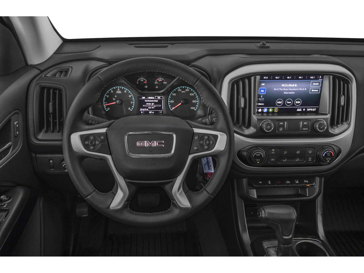 ELEVATION PREMIUM PACKAGE includes (H2U) Jet black leather-appointed front seating, (KA1) heated driver and front passenger seats, (UVD) heated steering wheel and (AL9) power driver lumbar control seat adjuster (Vehicles built prior to 11-15-2021 and on or after 2-21-2022 through 3-13-2022 and after 5-2-2022 include heated driver and front outboard passenger seats. Certain vehicles built between 11-15-2021 and 2-20-2022 and after 3-13-2022 and before 5-2-2022 will be forced to include (00V) Not Equipped with Heated or Ventilated Front Seats, which removes heated front seats. Vehicles equipped with (00V) Not Equipped with Heated or Ventilated Front Seats will be eligible for later dealer retrofit to enable functionality, see dealer for details.), LPO, ASSIST STEPS, BLACK, 3" ROUND, OFF-ROAD STEP BARS (dealer-installed), LPO, ALL-WEATHER FLOOR LINER, 1ST AND 2ND ROWS includes GMC logo, (dealer-installed), AUDIO SYSTEM, GMC INFOTAINMENT SYSTEM WITH 8" DIAGONAL COLOR TOUCH-SCREEN AM/FM stereo with seek-and-scan and digital clock, includes Bluetooth® streaming audio for music and select phones; featuring Android Auto® and Apple CarPlay® capability for compatible phones (STD), ENGINE, 3.6L DI DOHC V6 VVT (308 hp [230.0 kW] @ 6800 rpm, 275 lb-ft of torque [373 N-m] @ 4000 rpm) (STD), TRANSMISSION, 8-SPEED AUTOMATIC (STD). GMC 4WD Elevation with Onyx Black exterior and Jet Black interior features a V6 Cylinder Engine with 308 HP at 6800 RPM*.